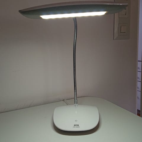 Kuvan mukainen valkoinen pöytävalaisin. E14-kannalla ja katkaisimella. Nouto Reijolasta.