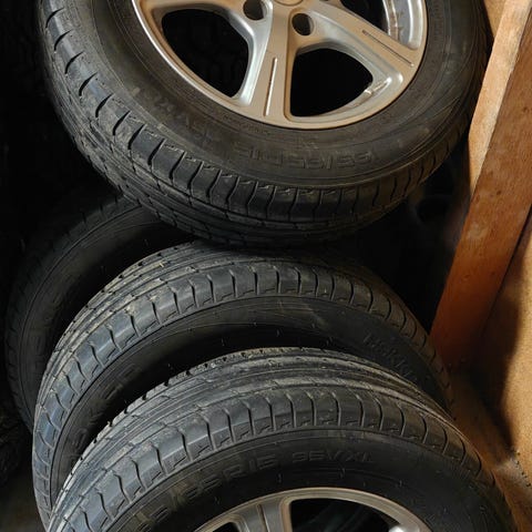 Hyvät aluvanteet kesärenkailla. Olleet pikku mersussa. Pultit mukaan. Renkaiden kunto tarkistettava.