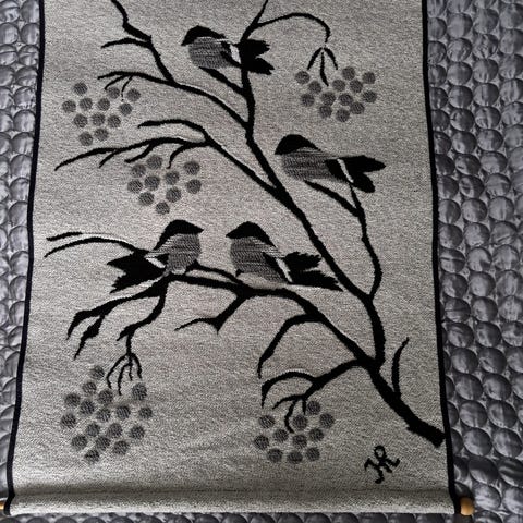 Vintage mustavalkoinen seinävaate, erinomaisessa kunnossa. Ylä- ja alareunassa puut. Koko 80×105cm.