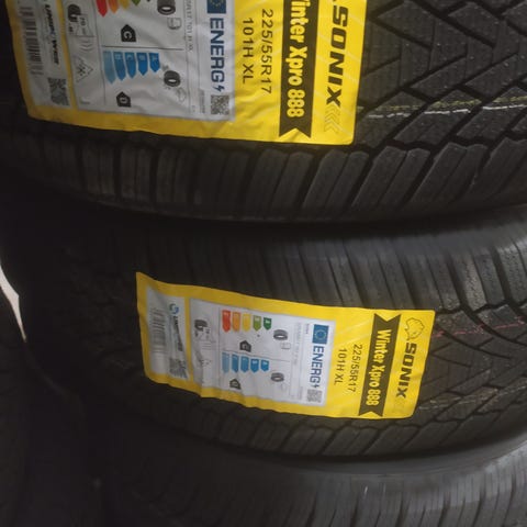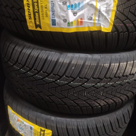 Sarja uusia ajamattomia 225/60R17" Powertrac kitkarenkaita.