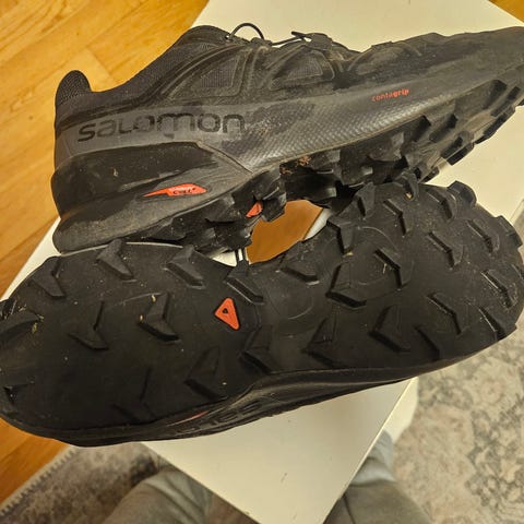 Salomon Speedcross 6 polkujuoksukengät, naisten, koko 40. Väri musta. Noin 15km verran kävelty/juostu, kunnes todettu omiin jalkoihin aavistuksen liian pieniksi. Pinnasta pahimmat ravat puhdistettu, muuten uutta vastaavassa kunnossa.
