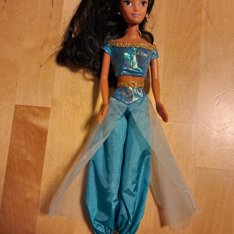 Hyväkuntoiset Disneystore Jasmine pää Mattel barbie kehossa, Disney Descendants Uma ja sinihiuksinen lumikeijunukke.