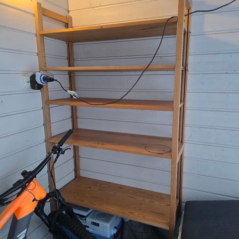 Lundian 30 cm syvään hyllykköön tehdasruskealakattuja levennettyjä hyllytasoa 30x50x40, 30x80x50, 30x80x60 ja 30x100x40. Normaalia käytön jälkeä.