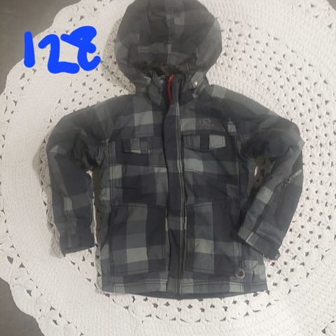 Reilun kokoinen toppatakki, 128cm, väri keltainen, siisti ja ehjä. Vasta pesty.