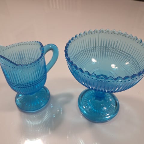 Tässä on viehättävä, kirkaslasinen kermakko, joka sopii täydellisesti vintage-astiastoon tai keräilijälle.