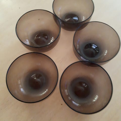 Vanhat Iittalan siniset kulhot, 5 kpl, halkaisija 13 cm, korkeus 5 cm.