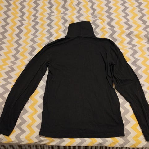 Miesten tummanharmaa neulepaita poolokauluksella. Materiaalilappu kulunut valitettavasti pois.