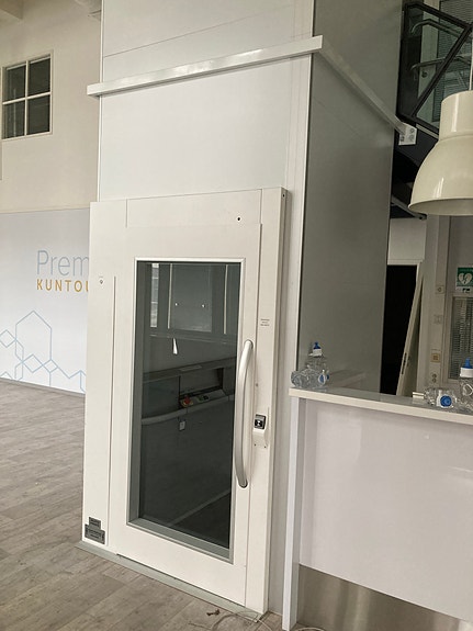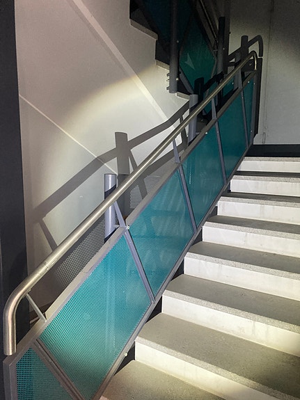 Kaide sijaitsee 2.kerroksessa. Auton saa ajettua lähelle 1.krs ulko-ovea, josta on vain yhdet portaat tähän aulaan, jossa kaide sijaitsee. Ainoa valonlähde on viereinen ikkuna eli halutessaan purkutyöhön voi ottaa mukaan otsalampun tms. akkukäyttöisen valaisimen.