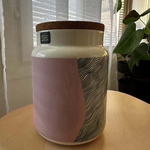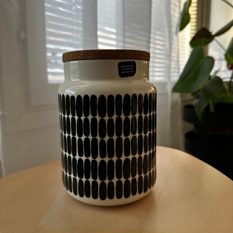 Uusi Marimekko purki .Korkeus noin 14.5 cm.Ei oma laatikko.