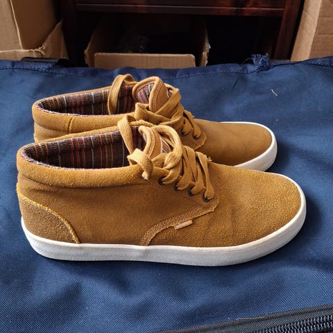 éS Creager – Ronnie Creagerin skeittikengät. Kunto kohtainen, takaremmeissä kulumaa + pääliosassa vähän likaa tms. Sisäpuolella kankaassa muutama pieni reikä tai kuluma, ei mitään isoa. Koko US7,5/Eu40. Alkuperäinen laatikko ja punaiset nauhat tulee mukaan