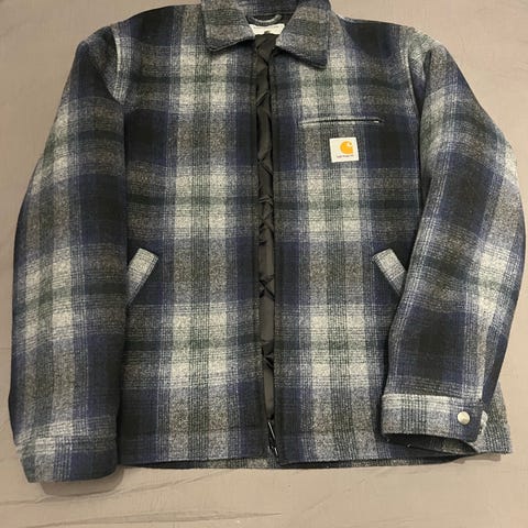 Carhartt Hooded Sail Jacket laivastonsinisenä, kokona M. Takki muuten erinomaisessa kunnossa, mutta vähän likaa/kulumaa käsissä. En ole koittanut pestä pois.