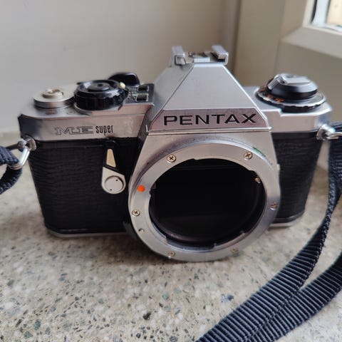 Kamera, Asahi Pentax zoom 1:4 75-150mm, Chinon zoom 1:2.7-3.5 35-70mm, Chinon salama, lankalaukaisin sekä pehmustettu laukku. Kaikki muuten erinomaisessa fyysisessä kunnossa paitsi kameran etsimessä näkyvistä led valoista 1 sekunnin valotusta ilmaiseva ledi ei loista silloin kun 1s valittu sekä Chinon salaman patterikotelossa liittimissä hapettumaa. Salama toimii. Kameran kattava 16 sivuinen esite myös mukana. Kaikki ensimmäiseltä omistajalta. Myydään kaikki kerralla. Mieluiten nouto jolloin voi hypistellä omissa käsissä mitä on ostamassa. Tarjouksia voi myös ehdottaa.