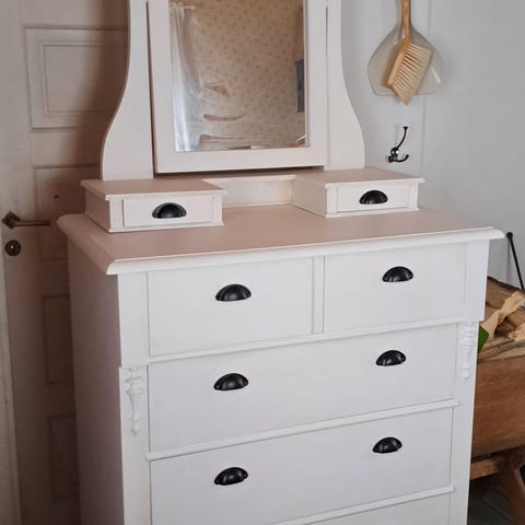 Antiikkinen kaunis peili lipasto, häviävää Antiikkia ja arvonsa säilyttävää.
