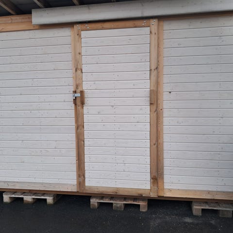 Kuvassa näkyvä saunan ovi otetaan pois joten siihen jää oven kokoinen aukko.