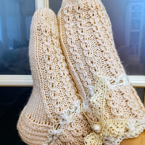 Neulesukat, villasukat, pitsineule, kotimaista käsityötä, joululahja.