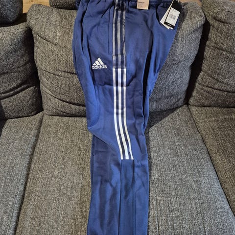 Adidas Jalkapallohousut mustassa värissä, koko XL. Materiaali ja muut ominaisuudet näkyvät kuvan mukana tulevista lapuista. Soveltuu jalkapalloon ja urheilukäyttöön miehille.