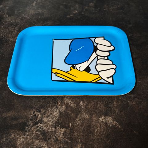Aku Ankka tarjotin, metallinen, jonkin verran kulumaa.