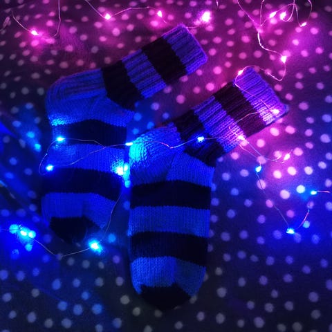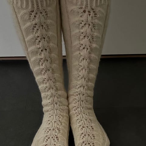 Isoäitini tekemät villasukat. Venyvät ja mukavat jalassa. En ole kertaakaan käyttänyt paitsi kerran kokeilin.