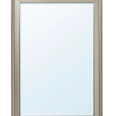 IKEA Songe peili, jossa on koristeellinen hopeanvärinen kehys. Peilin kehys on kuvioitu ja siinä on pieniä käytön jälkiä (kts. kuvat 4-5). Peili soveltuu seinälle ripustettavaksi ja on tarkoitettu sisäkäyttöön. Kunto kahdesta kehyksen halkeamasta huolimatta hyvä! Mitat: 91cm x 130 cm. Nouto Alppila, Helsinki.