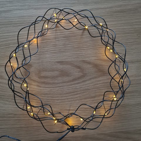 Myydään kolme valokranssia, halkaisija 28cm, warm white LED. Sisäkäyttöön