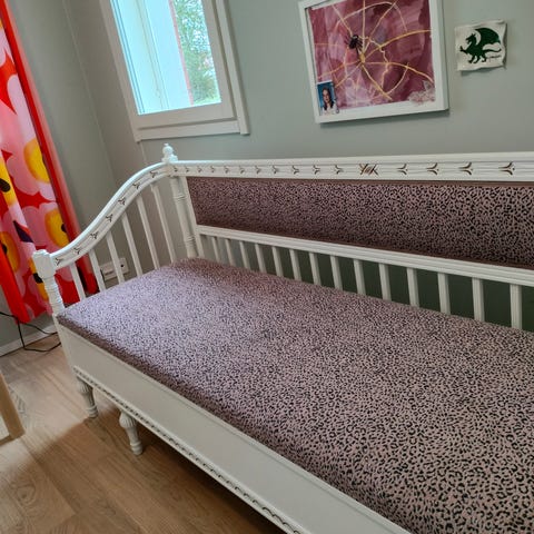 Uusi tyylikäs verhoilu, hyvä kangas. Hyvässä kunnossa oleva levitettävä sohva.