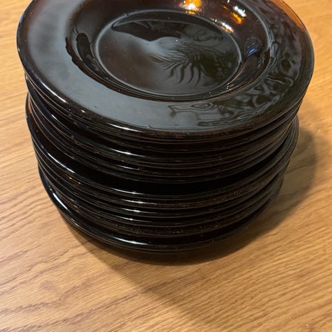 Lautaset on valmistettu 1970- luvulla ja niitä on 10kpl, niiden halkaisia on 27 cm ja paino 1,2 kg.