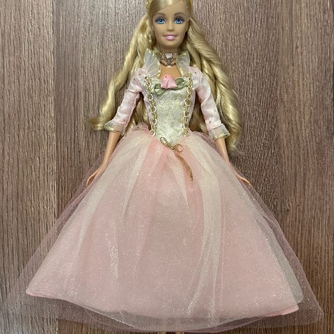 Barbie Prinsessa ja Kerjäläistyttö Anneliese nukke ja Serafina figuuri setti. Alkuperäiset kengät ja asusteet mukana. Nukke ja mekko ovat erinomaisessa kunnossa (mekko ei mene takaa kokonaan kiinni). Laulutoiminto toimii vaihtelevasti, en takaa toimivuutta. Laulaa ”la la la” versiot lauluista Oomme kuin siskokset ja Kissan nauku on kuin haukku. Ei paristoja mukana. Serafina on hyvässä kunnossa, mutta maalissa on paikoitellen pientä kulumaa.