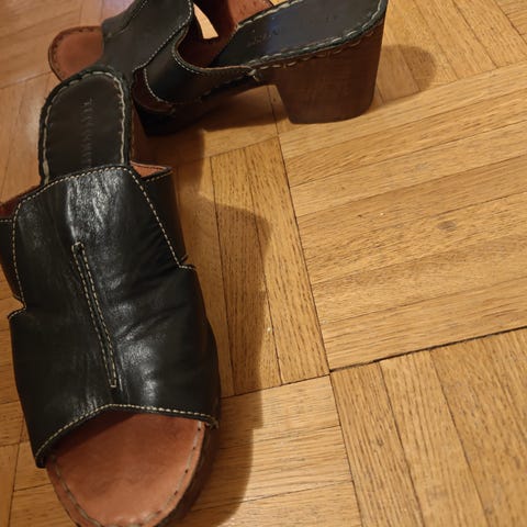Kesäksi tai lomareissulle korolliset kengät. Sisäpuoli värjäytynyt aurinkorasvasta laikukkaaksi, ks kuva. Muuten hyvässä kunnossa.