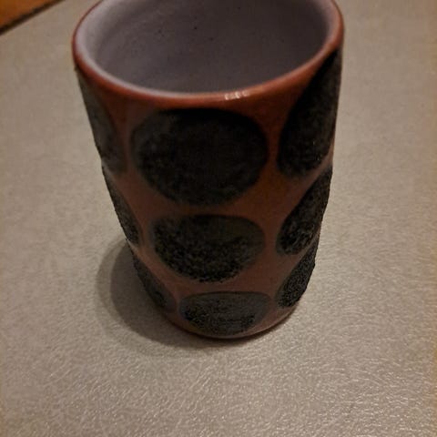 Kupittaan Savi lautanen, jossa on ruskea ja valkoinen väritys sekä kasviaiheinen kuviointi. Valmistettu Suomessa, ja se edustaa suomalaista keramiikkaperinnettä, joka on tunnettu laadustaan ja kauniista muotoilustaan. Signeerattu taakse RS Raili Suvanto