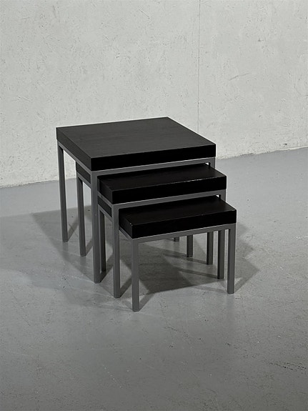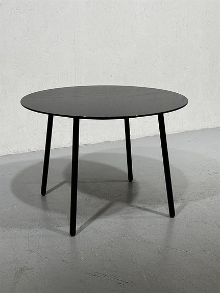 Moderni musta TV-taso, jossa on neljä vetolaatikkoa ja kaksi lasiovellista keskiosaa. Tasossa on metalliset vetimet ja jalat, jotka tuovat tyylikästä kontrastia mustaan pintaan. Sopii hyvin monenlaiseen sisustukseen ja tarjoaa runsaasti säilytystilaa viihdelaitteille ja muille tarvikkeille.Tyyli on moderni retro, joka yhdistää 2000-luvun alun minimalistisen muotoilun ja käytännöllisyyden. Tämä tyyli on tunnettu selkeistä linjoistaan ja toiminnallisuudestaan, mikä tekee siitä suositun valinnan nykyaikaisiin koteihin.Kunto on kohtalainen. Pintamaalissa on näkyviä naarmuja ja kulumia, erityisesti kulmissa ja tasossa. Lasipinnat ovat ehjät, mutta niissä saattaa olla pieniä käytön jälkiä. Pölyä