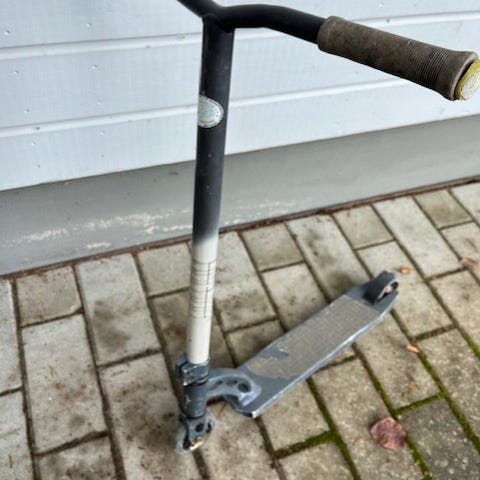 Nuorten temppupotkulauta. Käytön jälkiä näkyy kuten kuvista ilmenee, mutta muuten toimiva skuutti.
