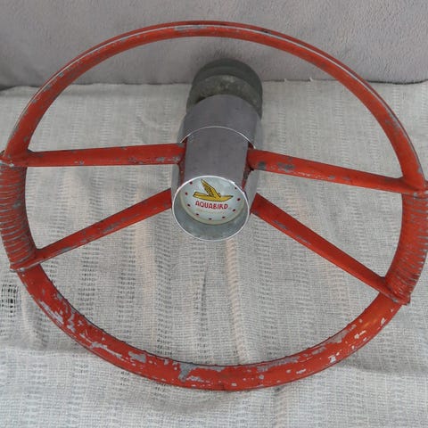 Klassikko veneeseen soveltuva vaijeri ohjausakseli ja entisöity ratti. Ratin napa uudelleen kromattu. Näyttävä ratti myös Hot rod/ Rodi käyttöön.