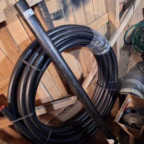 PEM viemärin paineputki keltaisella viivalla, ulkomitta Ø 5 cm, n. PITUUS 25-30 m HINTA YIKSITTÄIN 40 €