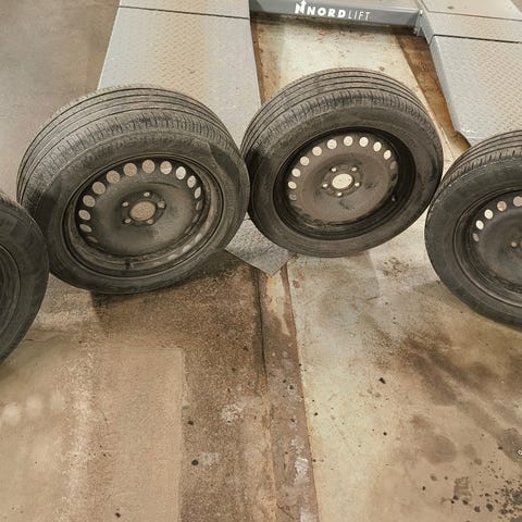 Kaksi renkaista puhki ja kaksi hyväkuntoisia. Vanteet ok joten vaihtamalla kuntoon.