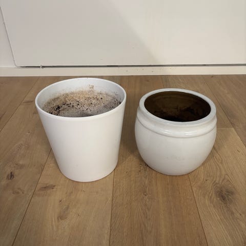 Iso muovinen harmaa kukkaruukku. En mittaile. Ehjä. Sijaitsee Niittykummussa.