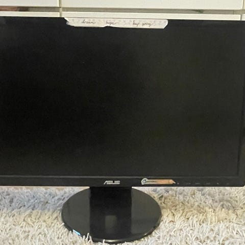 Asus VE228H näyttö, 21,5 tuuman koko, musta väri. Näytössä VGA-liitäntä ja se soveltuu yleiskäyttöön tietokoneen kuvan näyttämiseen. Näytön rakenne on muovia ja siinä on jalusta. Mukana Lenovo-merkkinen virtalähde.