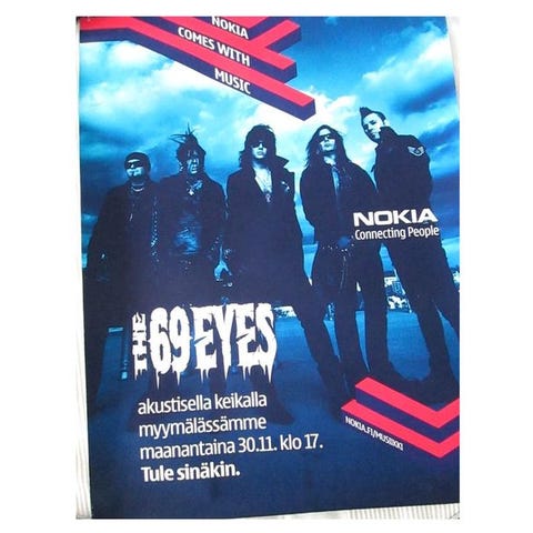 The 69 Eyes juliste. 53 cm x 84,5 cm. Hyvässä kunnossa. Hinta: 20 euroa (sis postin).