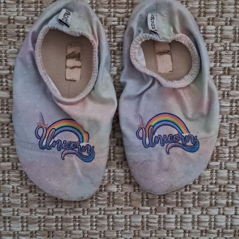 Päiväkotitossut. Käytetty mutta ehjät. Kärjessä ja pohjassa kulumaa. Sisäpuolella jälkiä nimitarroista