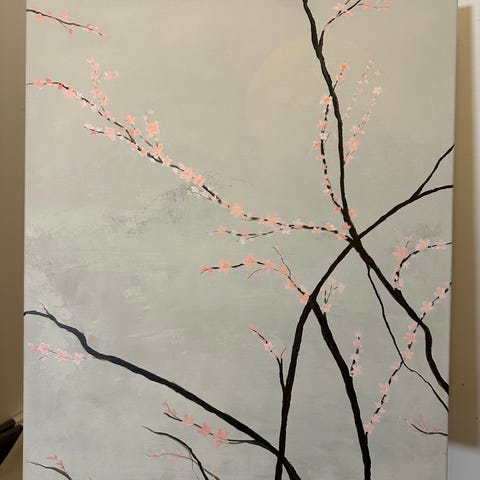 Maanläheisiä sävyjä käytetty maalaukseen. Koko 50cm x 60cm