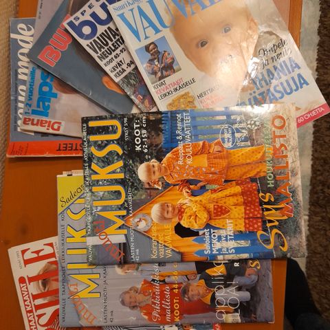 Neulelehti jossa paljon lasten , taaperoiden ja vauvojen neulevaatteiden ohjeita. Mm kannessa olevan traktorineule , heppa neule ja monta muuta. Erillinen ohjevihko jossa suomeksi ohjeet. Alkuperäinen ohje norjaksi tai tanskaksi.
