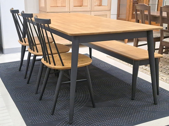 - Veistoksellinen, pyöristetty musta runko ja öljytyt tammi istuin ja selkänoja