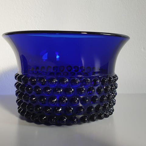 Nuutajärven Näppylämaljakko, design Saara Hopea. Tumman sininen/mustikansininen.