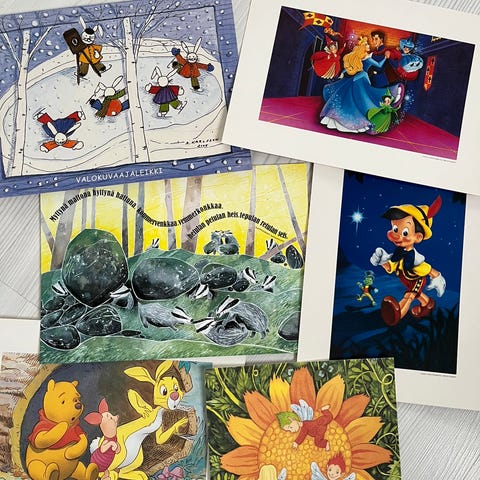 Disney Aku Ankka -aiheiset postikortit. 9 korttia. 1,50 € kpl.