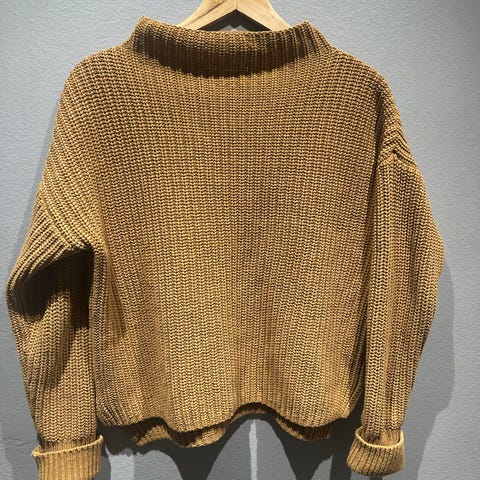 Vaaleanruskea klassinen pitkähihainen Selected Femme merkin Neulepaita, koko S. Neule on valmistettu pehmeästä materiaalista ja siinä on pitkät hihat sekä pyöreä pääntie, jossa on koristeellisia neulosyksityiskohta.