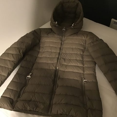 Siisti ja laadukas takki. Koko 34, mutta vastaa mielestäni kokoa 36-38. Väri on viininpunainen.
