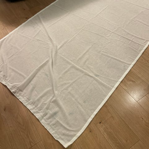 Vallilan kerran kokeiltu verho, valkoinen matrapinta, läpinäkyvä, kuin uusi. Tankokuja. Myynnissä myös toinen samanlainen