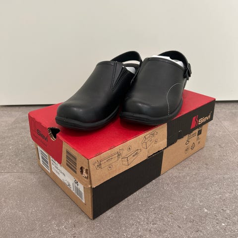 Sievi puukengät ja pistokkaat, koko 40. Mustat nahkaiset kengät, joissa kumipohja. Soveltuvat työ- tai vapaa-ajan käyttöön.
