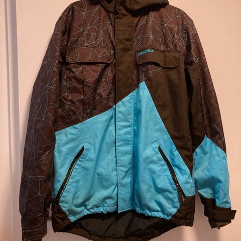 Protest Geotech naisten takki sinisenä, koko M. Takissa on vedenpitävyys 5000 mm ja hengittävyys 5000 g/m²/24h. Sisältää irrotettavan hupun, vetoketjutaskuja (kaikki ehjiä) ja lumilukon. Materiaali kestävää ja sopii ulkoiluun ja vapaa-ajan käyttöön.