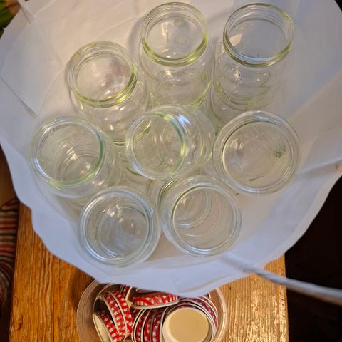 Annetaan kuvassa olevat säilöntäpurkit yht. 18 kpl pois nurkista pyörimästä.
