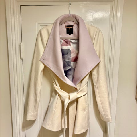 Myydään vain muutaman kerran päällä ollut polvipituinen beige Ted Bakerin villakangastakki. Takki on ryhdikäs ja laadukas ja istuu upeasti. Ei käytön jälkiä.
